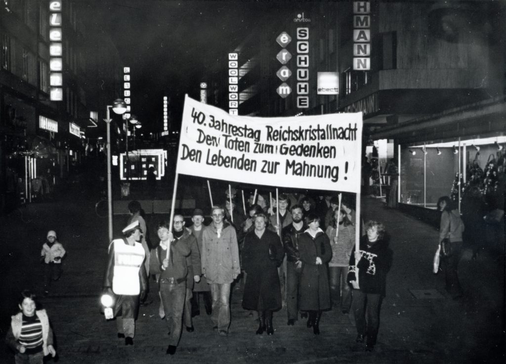 9. November 1978: Erste größere Gedenkdemonstration zum Novemberpogrom mit 450 Teilnehmerinnen und Teilnehmern.